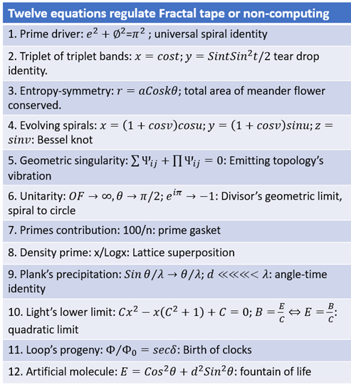 The question that I always wanted to find an answer to, was that, if it is possible to have a few geometric transformations that would cover all possible transformations in the universe? For example, we see the transformation of spirals and vortices all around the universe. Therefore, searching for spirals and vortices in anything we see and feel, would not be a futile process. To some extent we will be successful. Similarly, teardrop to ellipsoidal transmission, that is also, we see everywhere. It is also nice to see that spirals are electromagnetic field while teardrop to ellipsoid is gravity like. Therefore, if we can build a grammar how 10-15 geometric transformations are all possible to occur in nature, we can really build a new kind of computer. That computer would search for 15 geometric transformations everywhere, thus, identify the clock in any input data. We simply assume that whatever be the form and format of the information, I do not need to know, but they would fall into the category of these 15 geometric transformations. Therefore, we can get input as a code of 15 geometric transformations, then, convert them into 15 geometric shapes embedded into clocks holding geometric shapes, then, convert that as a composition of metrics, running in a loop. The infinite series like clock architecture is converted back into the input image, using 15 geometric shape transformations. The interface between the computer and the nature is the 15 geometric shapes.